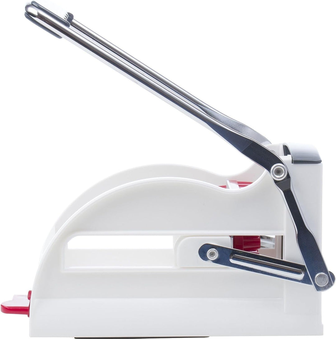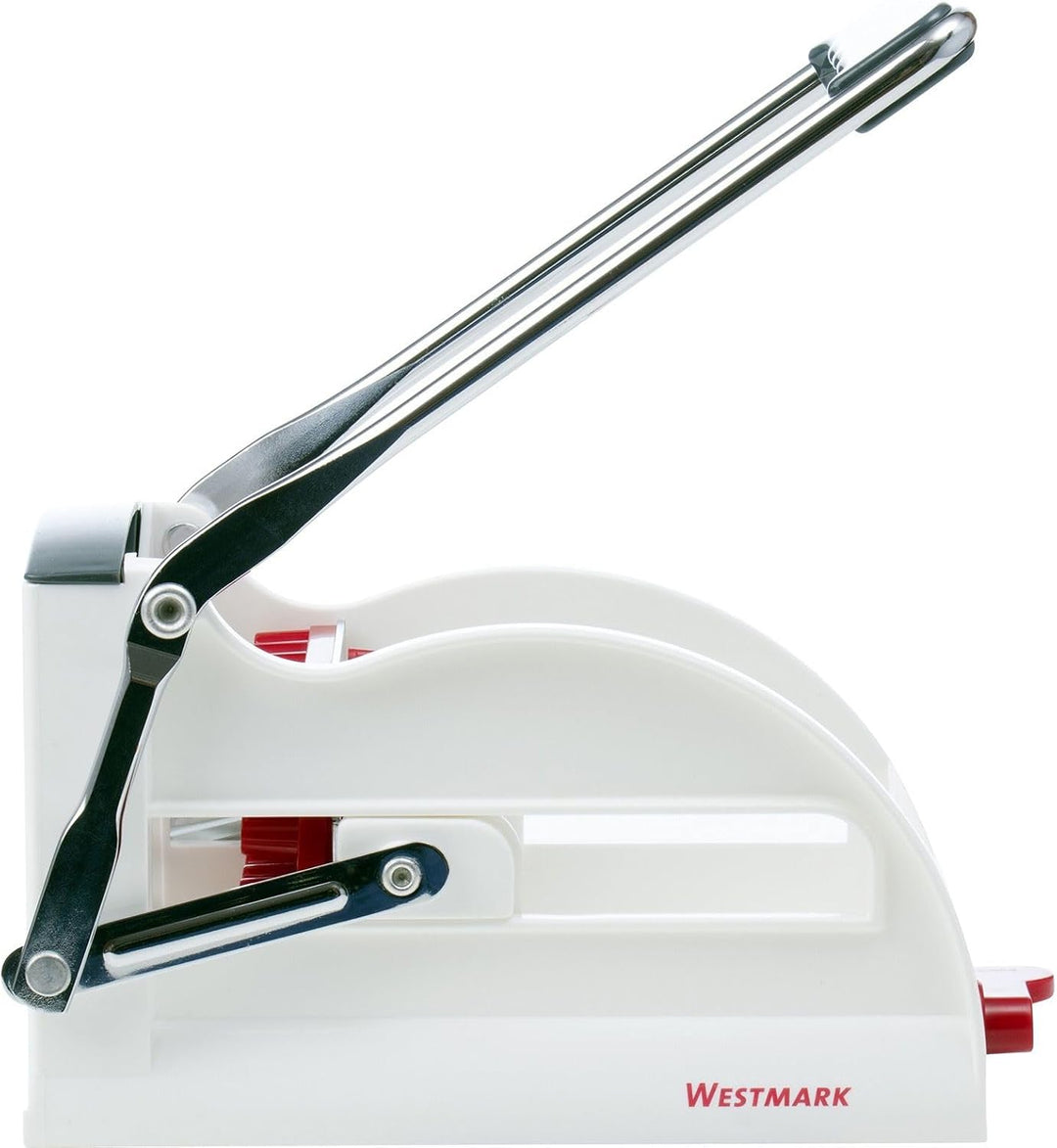 - Lieferumfang: 1x Westmark Pommes frites Schneider und Gemüse-/Obststiftler Easy Stix, inkl. 3 Schneideinsätzen, Gewicht: 680 Gramm, Material: Klingen: Edelstahl / Korpus: Kunststoff (ABS) / Hebel: Stahl, Farbe: Weiss/Rot/Anthrazit, 11802260