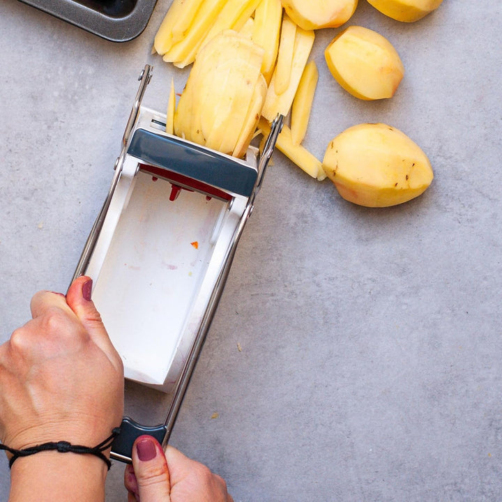 - Pommes-frites Schneider mit 3 Messereinsätzen zum Stifteln von frischen Kartoffeln für leckere Pommes frites, auch ideal für andere Gemüsesorten und Obst, für schmackhafte Salate oder Fingerfood-Kreationen