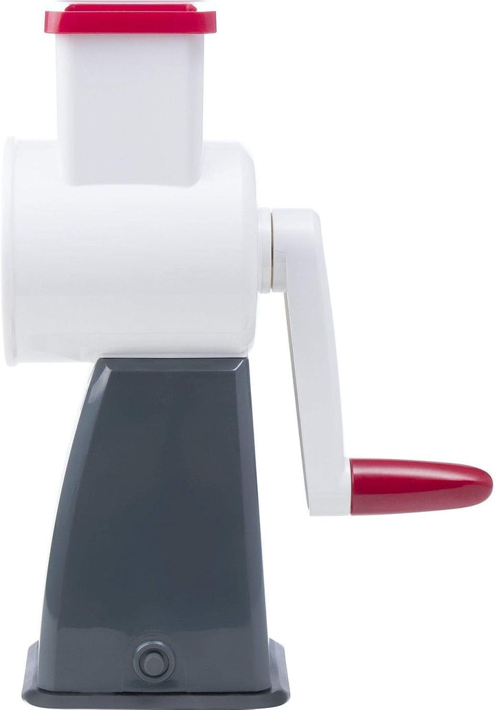 - Lieferumfang: 1x Westmark Reibemaschine mit 4 Schneidtrommeln, Trommelreibe/-hobel, Mit Verpackung, Masse: 19 x 28 x 11,5 cm, Gewicht: 850 Gramm, Material: Kunststoff (ABS)/Rostfreier Edelstahl, Farbe: Weiss/Silber/Schwarz/Rot, 97602260