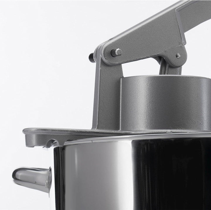 • Grosser Pressbehälter, Füllvolumen ca. 250 ml, klassische Rund-Lochung (Lochdurchmesser ca. 3mm), die langen Hebelarme ermöglichen eine optimale Kraftübertragung für einfaches und schnelles Pressen von Spätzleteig, Kartoffeln, Früchten oder Eis
