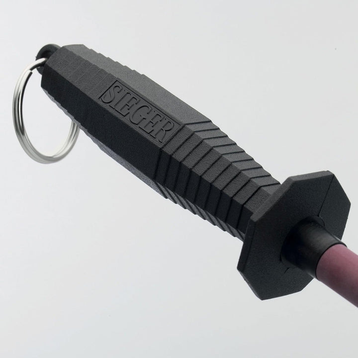- Anlegen der Klinge im 10 Grad-Winkel und leichtes Abziehen der beiden Klingenseiten entlang des Stabes, schmaler sechskantiger Griff aus Kunststoff mit Fingerschutz für guten Halt und mehr Sicherheit beim Wetzen