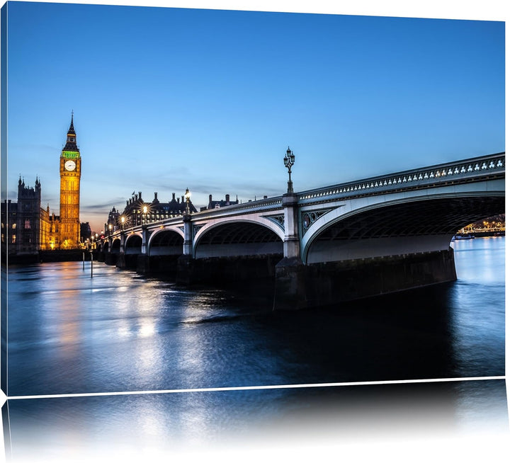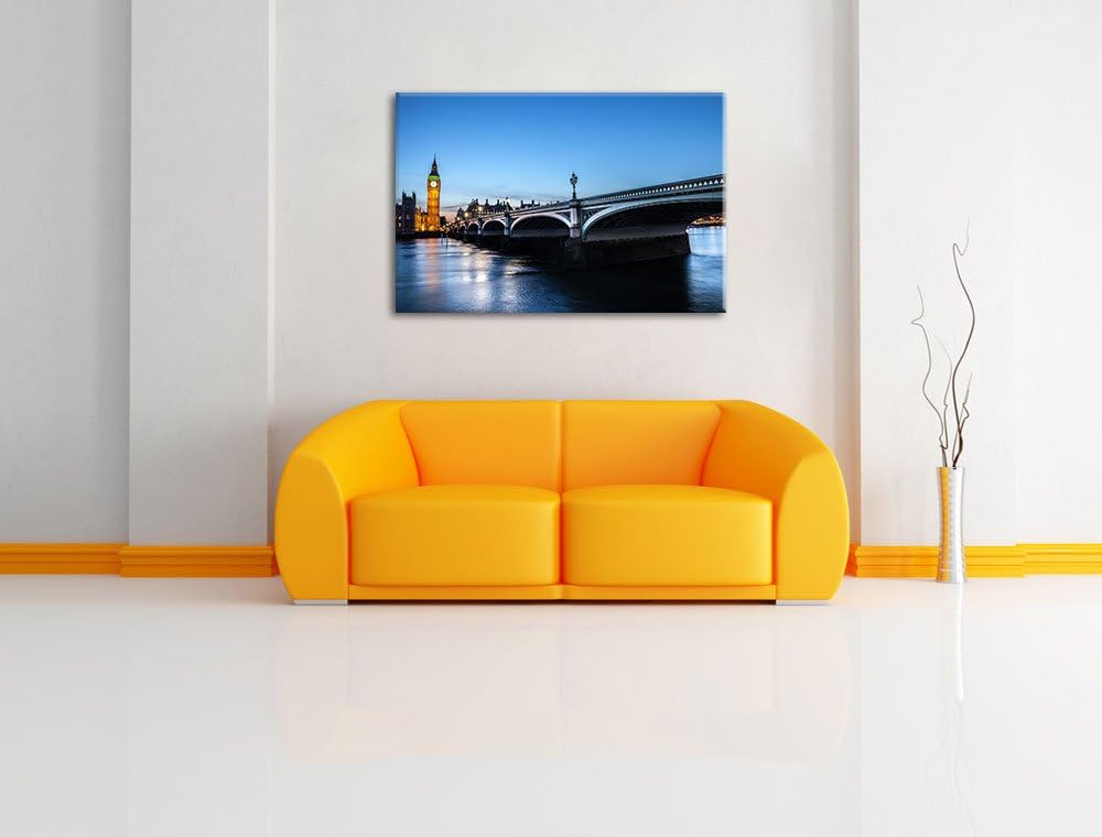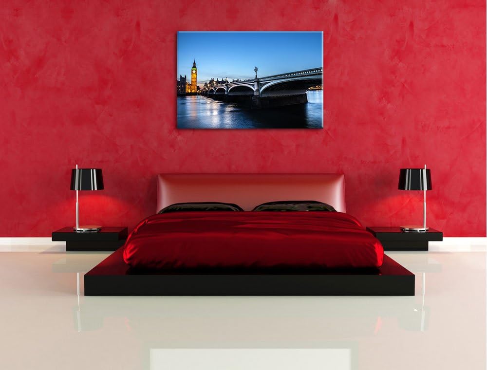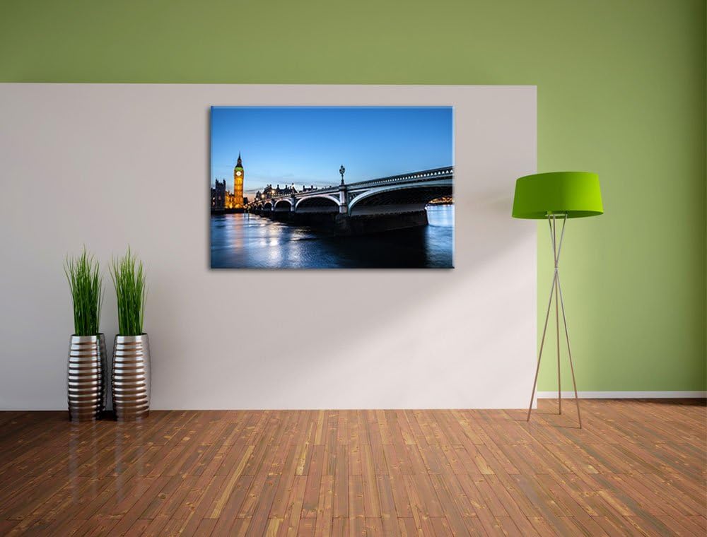 Westminster Bridge und Big Ben bei Nacht Format: 100x70 auf Leinwand, XXL riesige Bilder fertig gera