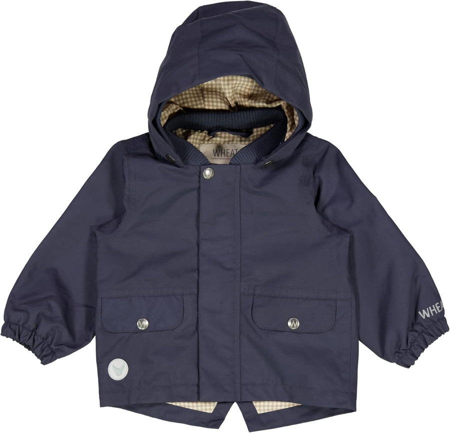 PRODUKTBESCHREIBUNGEN   "Wheat Outerwear Coole funktionelle Jacke aus wasserdichtem und atmungsaktivem Material für dein Kleinkind. - Normale Passform - Schnittlinie an der Taille - Abnehmbare und verstellbare Kapuze - Rippenkragen - Kellerfalte am Rücken - Gummizüge an den Ärmelbündchen - Taschen mit Taschenklappen und Druckknöpfen - Verdeckter Reissverschluss auf der Vorderseite mit Druckknöpfen - Fischschwanz-Schnitt auf der Rückseite - Reflektoren Die Funktionsjacken von Wheat sind atmungsaktiv, strapazierfähig sowie wind- und wasserdicht und sorgen dafür, dass dein Kind trocken und komfortabel bleibt. Das Material ist strapazierfähig und schmutzabweisend und daher leicht zu reinigen und zu pflegen. Die Jacke ist als Übergangsjacke für den Frühling gedacht, wenn die Temperaturen steigen und du mit leichterer Outdoor-Bekleidung beginnen kannst. Sie ist in schönen Farben und mit handgezeichneten Prints erhältlich, die vom hauseigenen Designteam von Wheat entworfen wurden. Die Tech-Jacke hat eine normale Passform und einige schöne Details wie Taschen, eine abnehmbare und verstellbare Kapuze sowie einen verdeckten Reissverschluss vorne mit Druckknöpfen. Die Ärmel haben Rippbündchen an den Handgelenken, die besser vor Kälte schützen. Technische Eigenschaften Wassersäule: 10.000 mm Atmungsaktivität: 8.000 g/m2/24 h Abriebfestigkeit: 50.000 Reibungen® 100 zertifiziert Flourinfrei (BIONIC-FINISH® ECO) PFC-frei Verschweisste Nähte Zusammensetzung Obermaterial: 100% Recyceltes Nylon Futter: 100% Recyceltes Polyester   Mehr