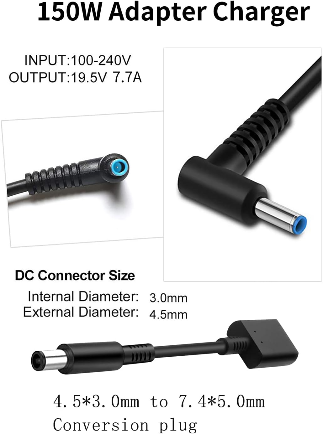 • Match 4,5 * 3,0 mm auf 7,4 * 5,0-mm-Kabel. Es kann mit 90W 120W 150W HP-Laptop kompatibel sein.(Nicht kompatibel mit USB-C HP Laptop)