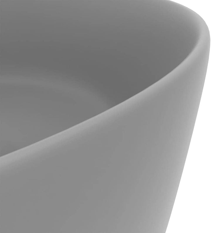 WIFESE Luxuriöses Waschbecken Rund Matt Hellgrau 40x15 cm Keramik Aufsatzwaschbecken Eckig Badezimme