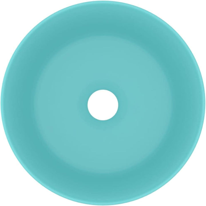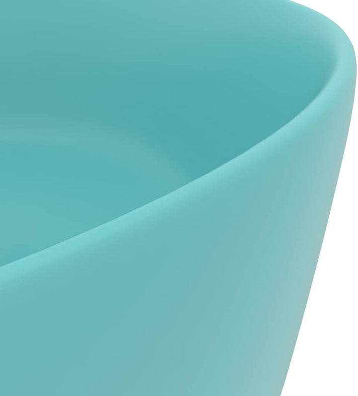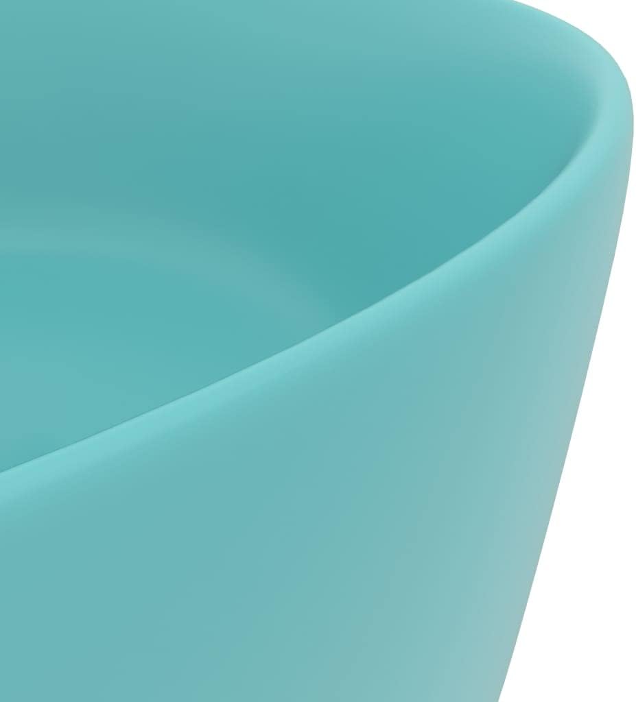 WIFESE Luxuriöses Waschbecken Rund Matt Hellgrün 40x15 cm Keramik Aufsatzwaschbecken Eckig Badezimme