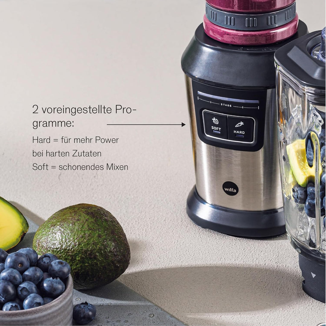 - ZWEI PROGRAMME - Der Smoothie Maker verfügt über zwei Programme. Programm SOFT ist für das Pürieren und Mixen von weichem Obst und Gemüse vorgesehen. Programm HARD zerkleinert und mixt härtere Obst- und Gemüsesorten zuverlässig