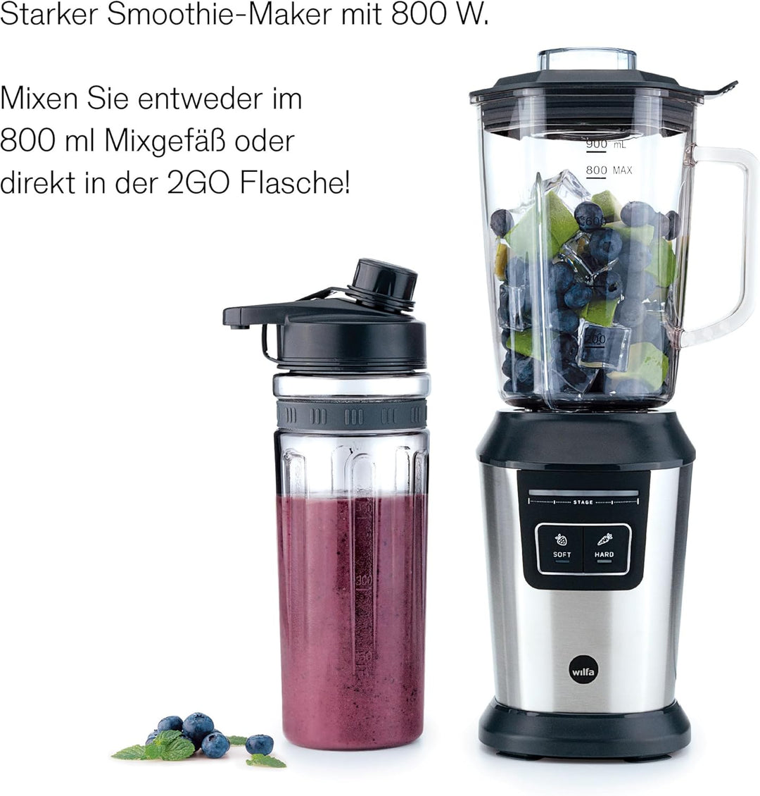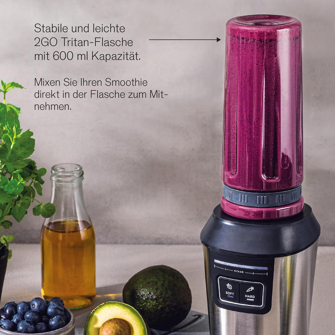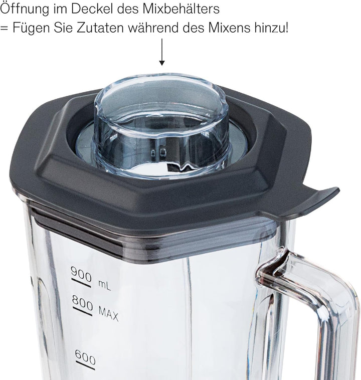 - INKL. 600ML TO GO BOTTLE - Neben der 800ml Mixerkanne wird eine 600ml Mixerflasche mitgeliefert. Zusammen mit dem beiliegenden Trinkdeckel kann das gemixte Getränk einfach und unkompliziert mitgenommen werden