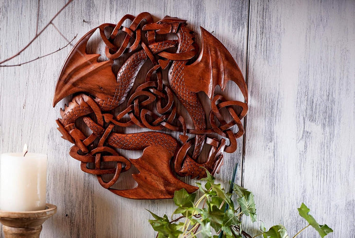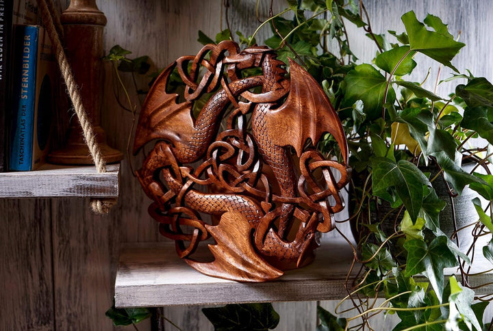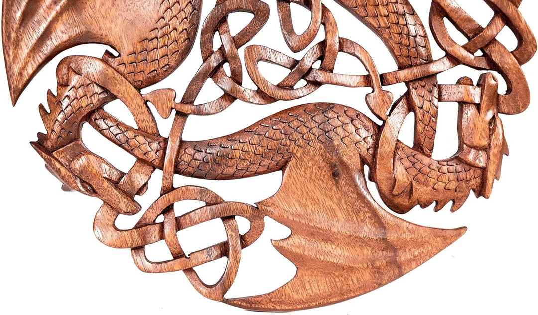 - Keltische Wanddeko mit Drachen und Knoten von Hand gearbeitet aus nachhaltigen Holz