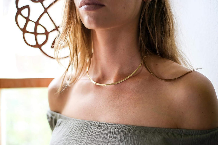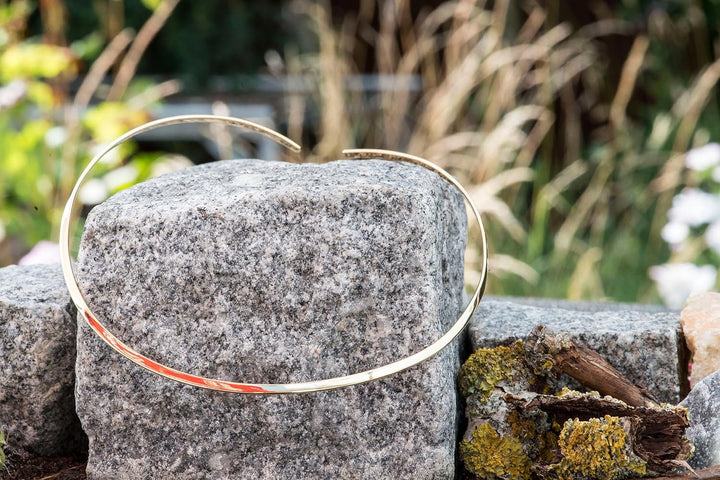 PRODUKTBESCHREIBUNGEN Ein edler, schön geschwungener Halsreif aus Bronze. Zarter Halsschmuck, ohne viel Schnickschnack der Dich in den Vordergrund rückt