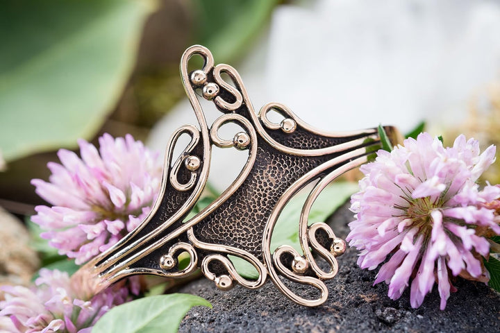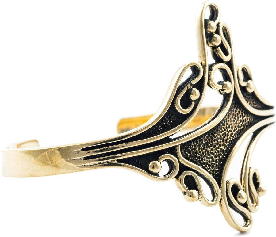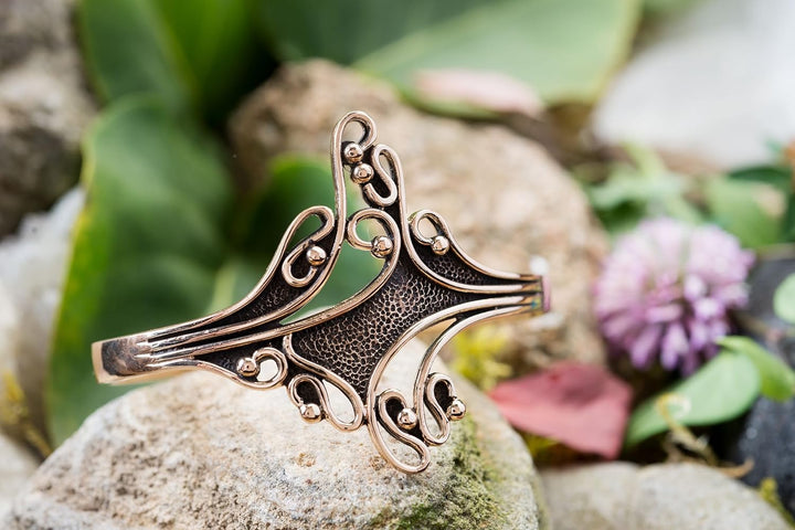 PRODUKTBESCHREIBUNGEN Ein bezaubernder Bronzearmreif, sehr elegant! Das imposante, grosse Schmuckstück ist ein echter Hingucker. Der Innendurchmesser ist ca. 6.5 cm. Du kannst den Armreif ganz einfach in der Grösse verstellen. * Innenumfang ( mit Faden gemessen) 16.5 cm * Stärke des Armschmucks ca. 0.6 cm Damit Du sehr lange Freude an Deinem Armreif hast, solltest Du diesen beim erstmaligen Anlegen, so wenig wie möglich aufbiegen. Hierbei den Armreif, wenn Du ihn in der Hand hältst, die beiden Enden nie nach rechts und links auseinander ziehen, sondern ein Ende nach vorne und das andere Ende zum Körper hin und wirklich nur so weit wie nötig aufbiegen. Für den täglichen Gebrauch: Den Armreif bitte immer über das Handgelenk anziehen, wenn möglich ohne zu biegen, um das Material nicht unnötig zu belasten. Silber und Bronze sind keine elastischen Materialien, deshalb den Armreif nur einmalig vor dem ersten Tragen vorsichtig zurechtbiegen.