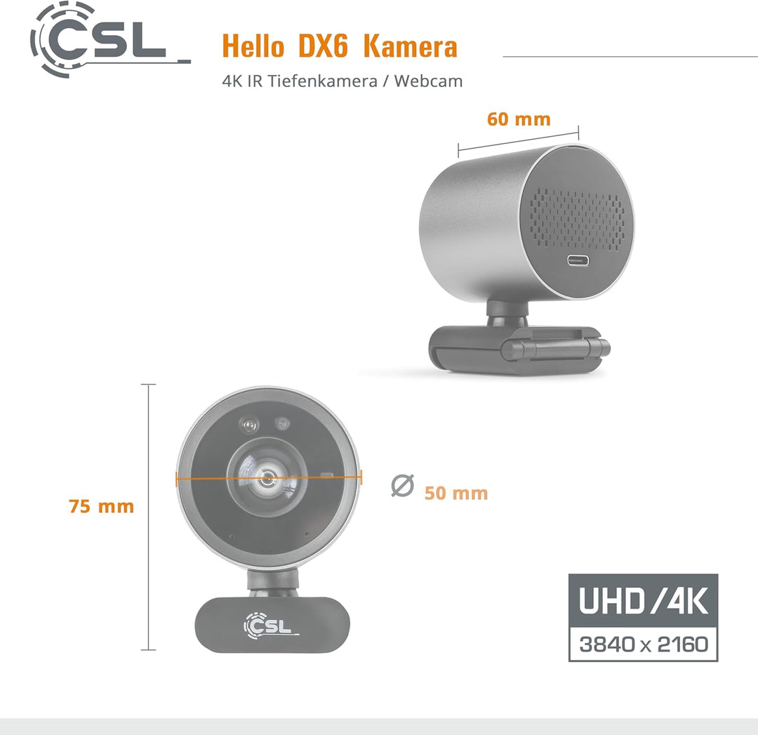 Windows Hello Kamera - CSL Hello DX6 Webcam, Infrarot-Tiefenkamera, 3840x2160@30Hz, integriertes Mik