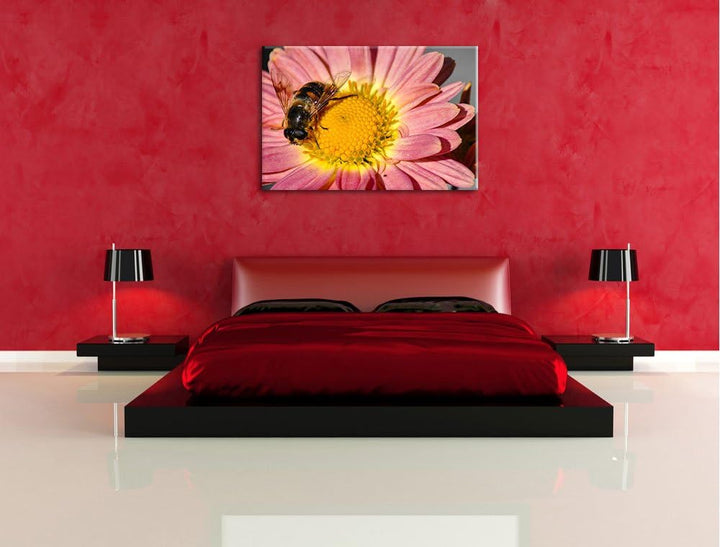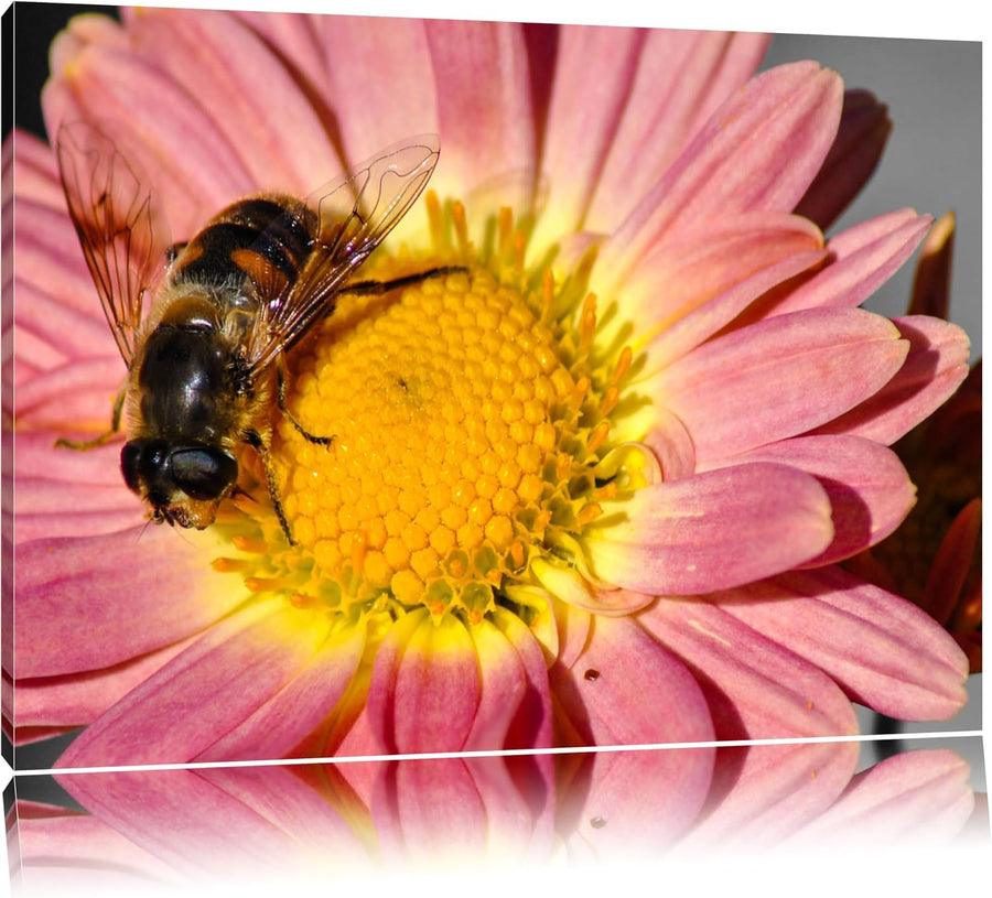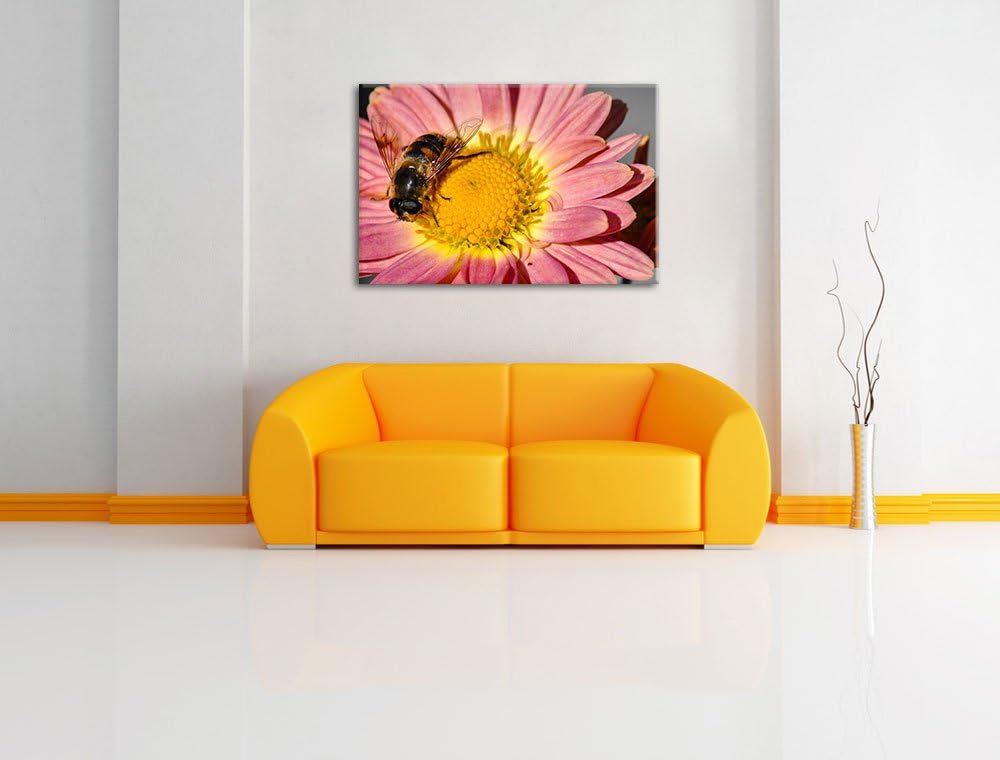 winzige Biene auf Margarete schwarz/weiss auf Leinwand, XXL riesige Bilder fertig gerahmt mit Keilra