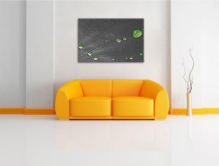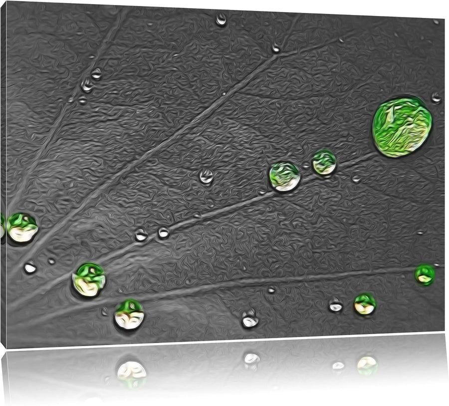winzige Wassertropfen auf grünem Blatt schwarz/weiss Deluxe Format: 100x70 cm auf Leinwand, XXL ries