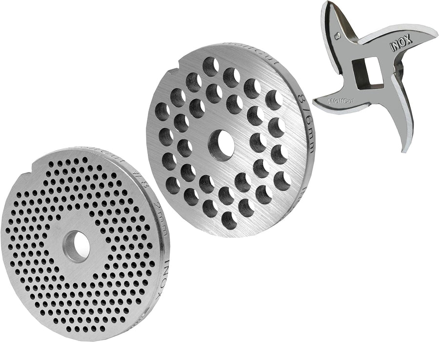 Wolfcut Lochscheibensatz 2mm + 6mm Bohrung und 1 Sichelmesser - Kompatibel/Ersatz mit Allen Fleischw