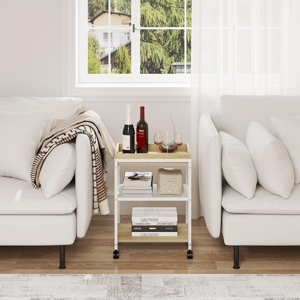 - SICHERE AUFBEWAHRUNG: Der Beistelltisch hat 3 Ablageflächen: die obere mit Seitenwänden schützt vor Herunterfallen und das Tablett ist einzeln benutzbar; die mittlere ist gitterartig und belüftet; die untere ist ideal für weniger benutzte Dinge