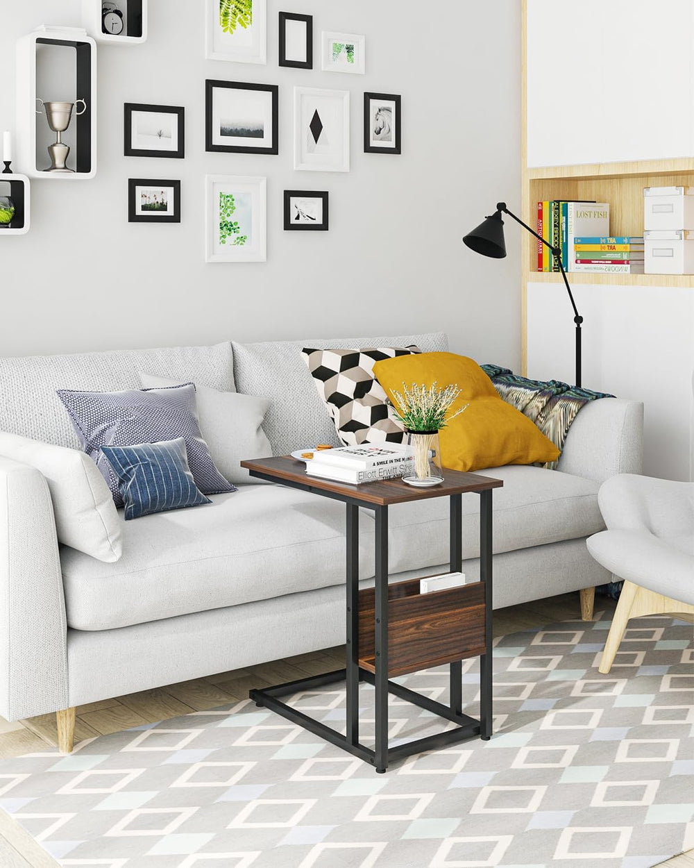 • Bequeme Seitenablage: Das seitliche Ablagefach dieses Couchtischs bietet ausreichend Raum für Handys, Bücher, Zeitschriften usw. Das geringe Gewicht von 6 kg und die Konstruktion des C-förmigen Designs lassen Sie ihn an die Seite des Bettes, Sofas oder Sessels rücken und als Laptoptisch, Esstisch, Arbeitstisch und Beistelltisch verwenden
