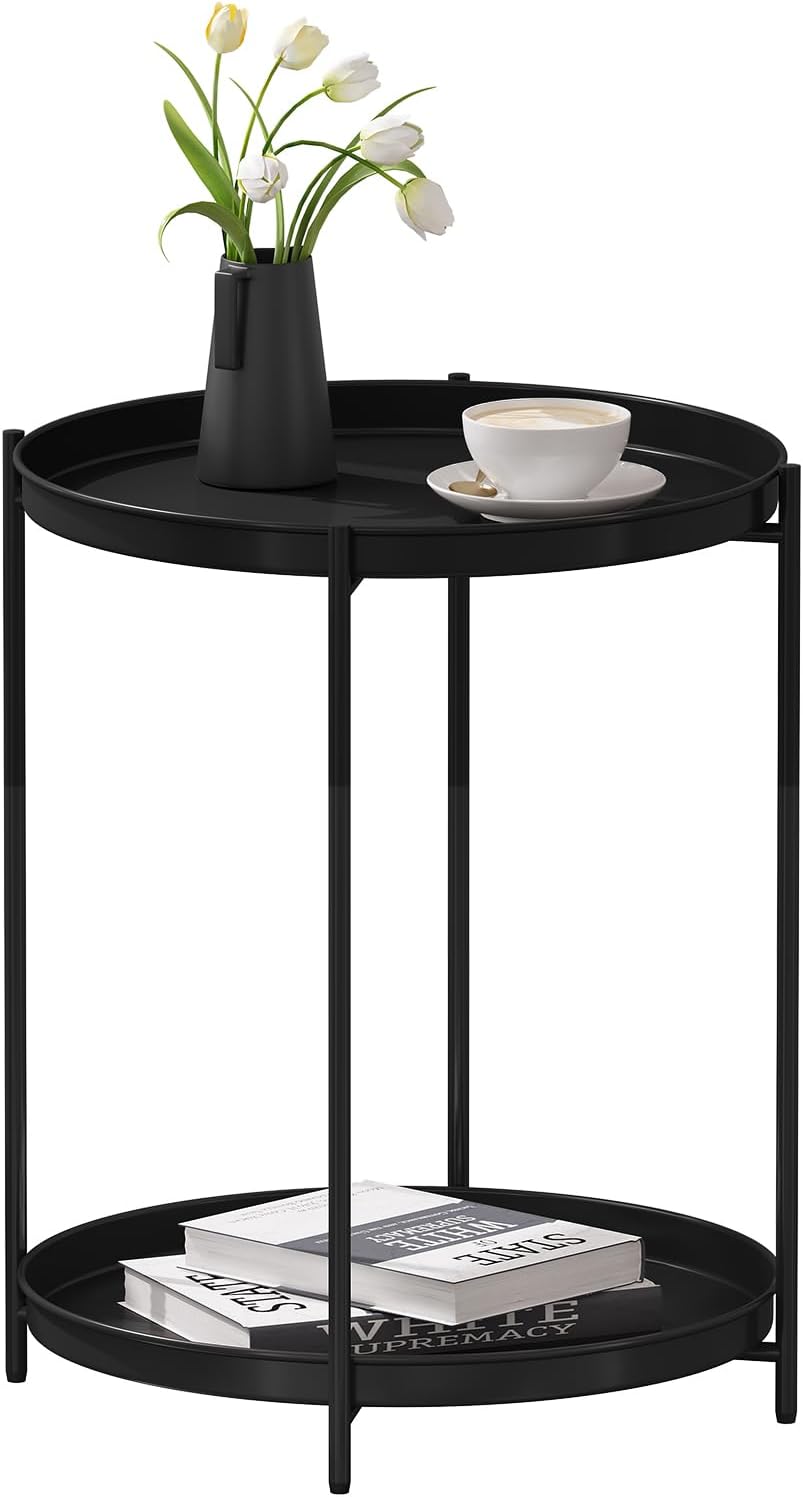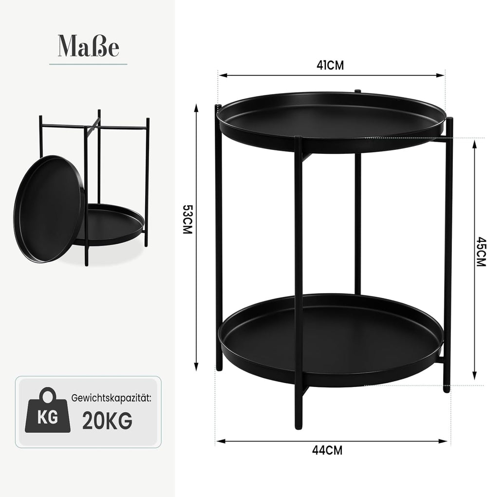 • ZWEI METALLTABLETTS: Der runde Beistelltisch bietet mit 2 metallischen Ablagen (φ: 44 cm) grosse Ablagefläche, ist ideal für kleine Räume. Hier können Sie in Ruhe eine Tasse Kaffee geniessen, Dekos ausstellen und auch Kleinigkeiten griffbereit