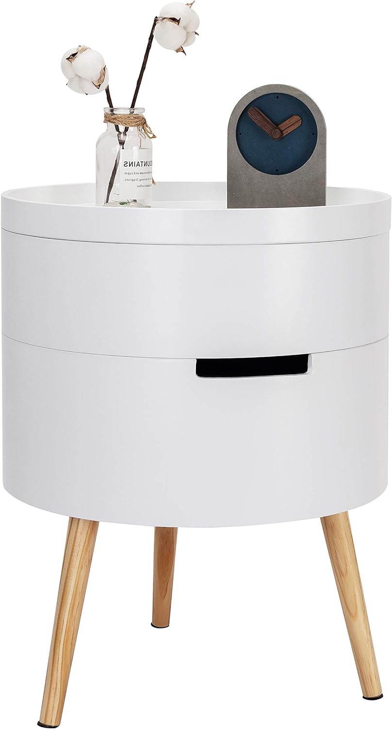 - Einfacher und modischer Stil: Die Kombination aus Weiss und Naturholzfarbe, das runde Design, die elegante und grosszügige Optik, der skandinavische Nachttisch kann mit einer Vielzahl von Wohnstilen kombiniert werden, um Ihrem Raum Mode hinzuzufügen.