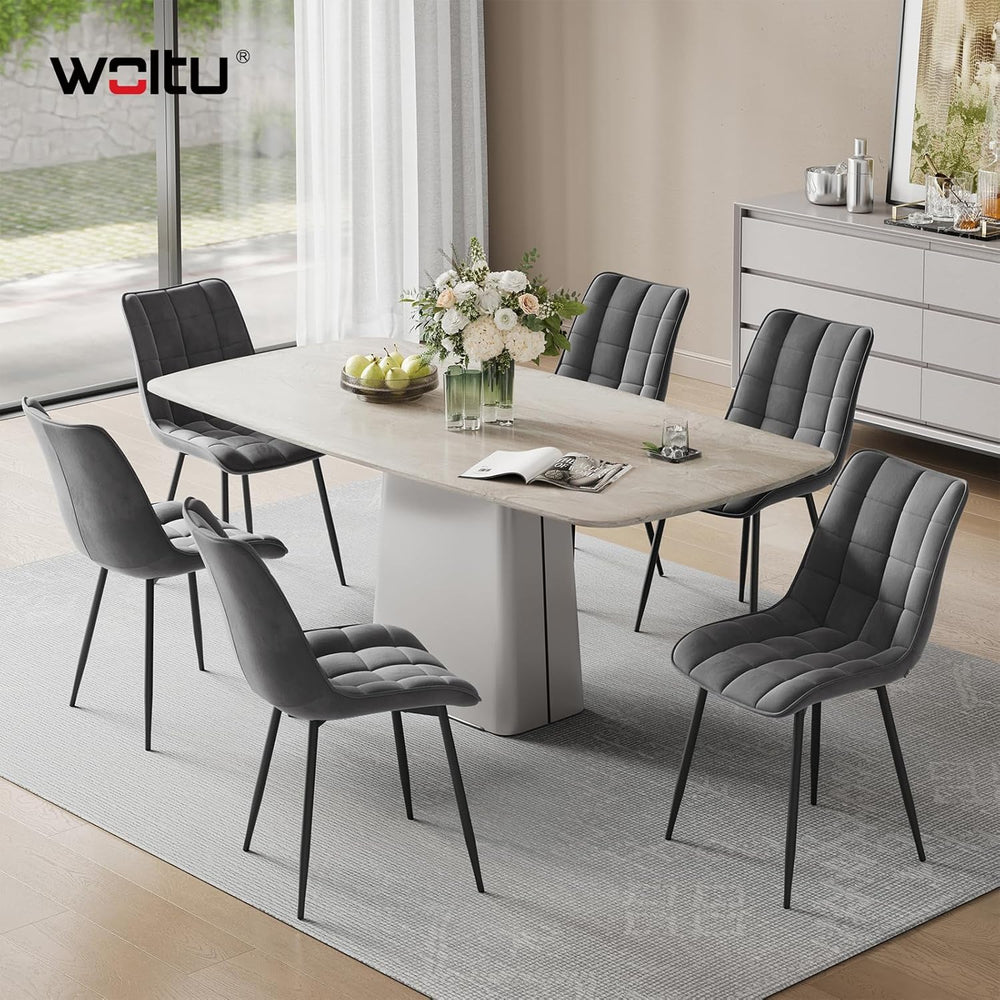 - Robuster Esszimmerstuhl: Der Stuhl (8er-Set) verfügt über eine strapazierfähige Samt-Oberfläche, eine hoch verdichtete Schaumstoffpolsterung und robuste Metallbeine. All dies trägt zu einer hohen Stabilität und Langlebigkeit bei. Maximale statische