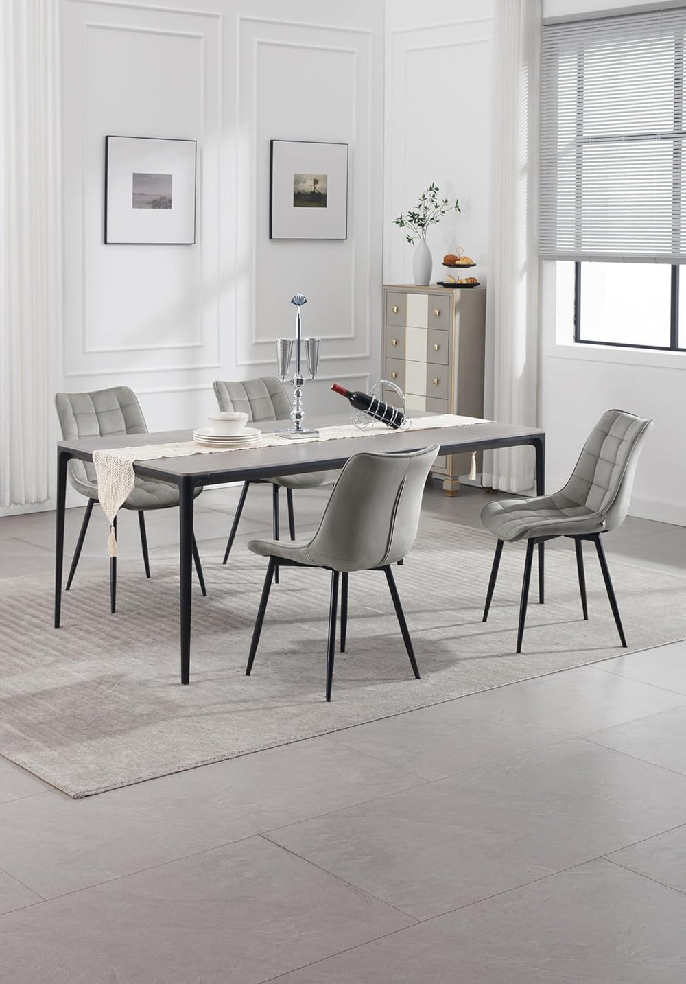 - Robuster Esszimmerstuhl: Der Stuhl (8er-Set) verfügt über eine strapazierfähige Samt-Oberfläche, eine hoch verdichtete Schaumstoffpolsterung und robuste Metallbeine. All dies trägt zu einer hohen Stabilität und Langlebigkeit bei. Maximale statische