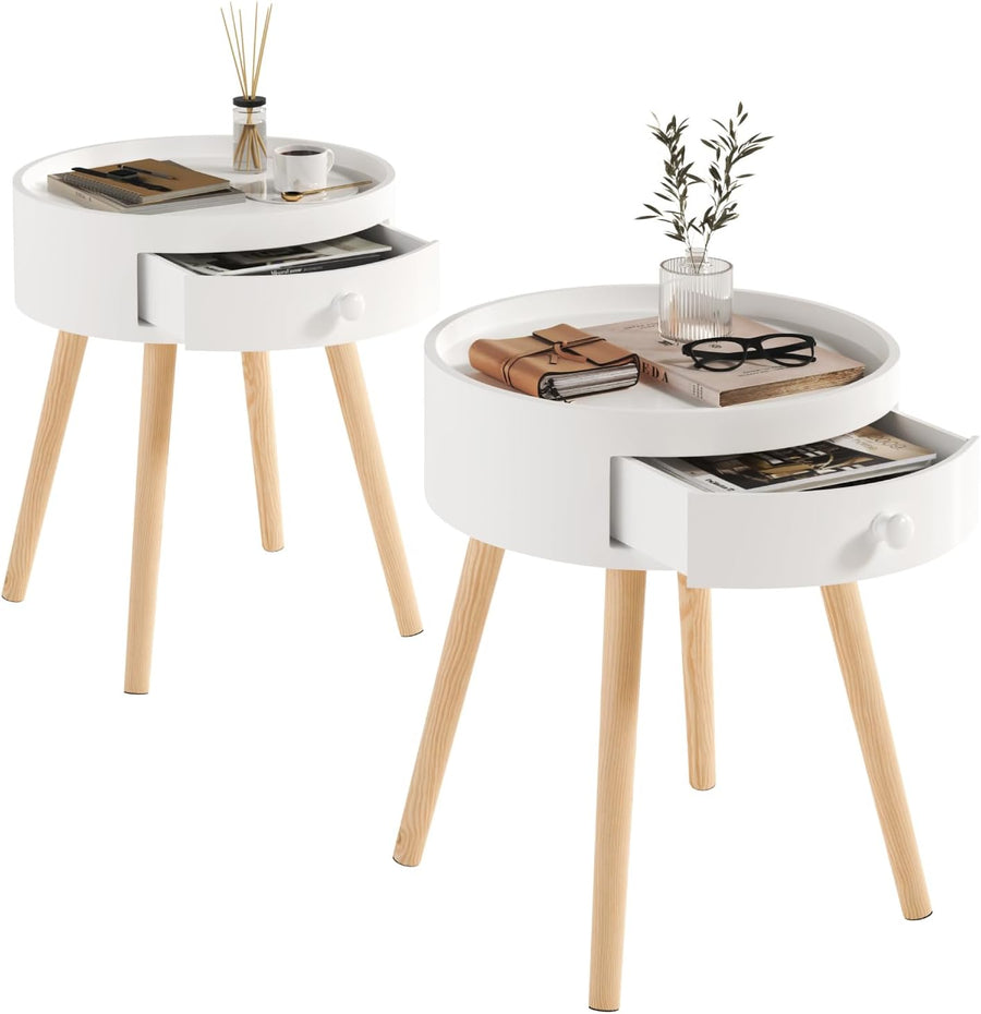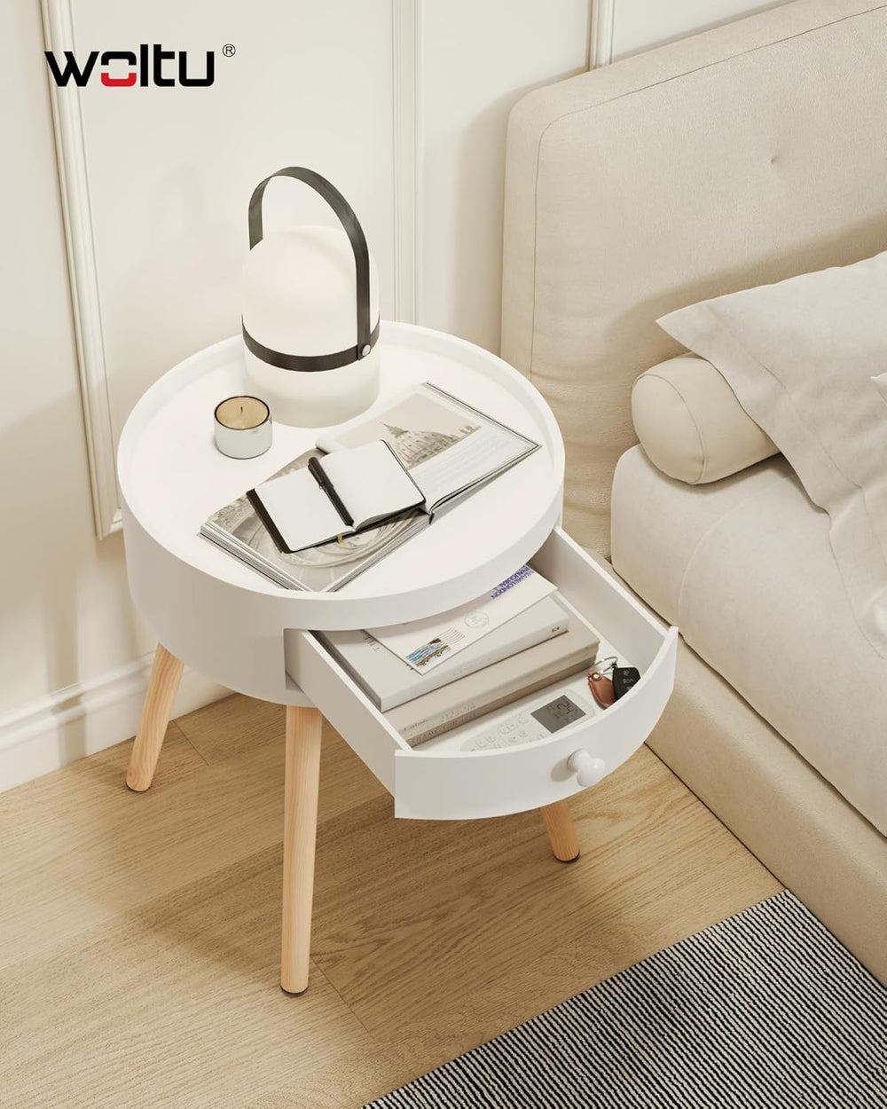 - Ausreichend Stauraum: Auf der runden Tischplatte können Sie Lampe, Wecker oder Tasse stellen. In der Schublade können Sie Kleinigkeiten wie Schlüssel, Fernbedienungen, Ladegeräte ordentlich unterbringen. Ein moderner und praktischer Beistelltisch