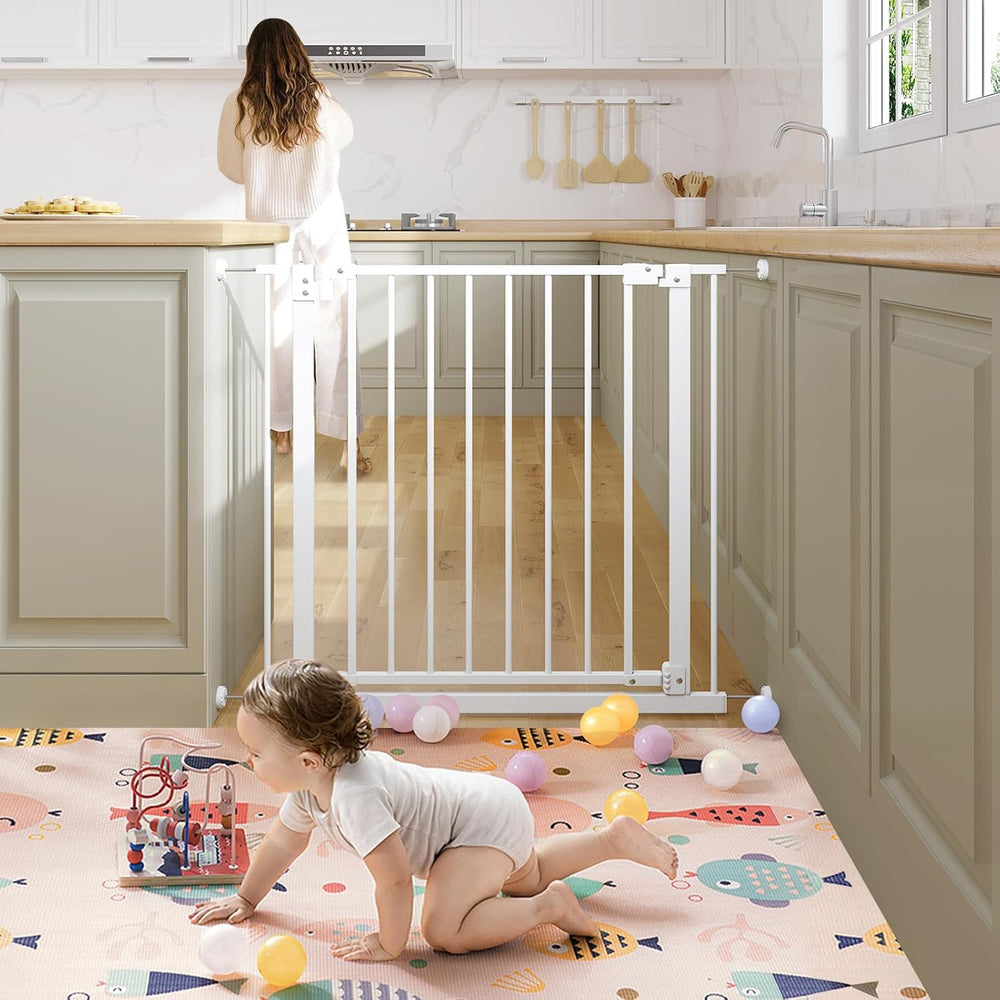 - VERSTELLBAR: Das 76 cm hohe Kindergitter passt in 75-87 cm Öffnungen, schützt Kinder vom Herunterfallen von Treppen und hält sie in sicheren Bereichen. Geeignet für Kinder im Alter von 6-24 Mo. oder Haustiere. Messen Sie die Durchgangsmasse im Voraus