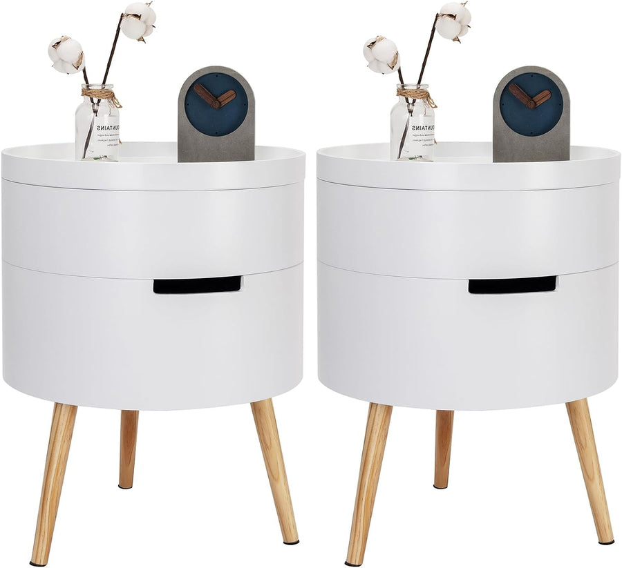 - Einfacher und modischer Stil: Die Kombination aus Weiss und Naturholzfarbe, das runde Design, die elegante und grosszügige Optik, der skandinavische Nachttisch kann mit einer Vielzahl von Wohnstilen kombiniert werden, um Ihrem Raum Mode hinzuzufügen. Dieser multifunktionale Tisch kann auch als Teetisch, Beistelltisch, Couchtisch, Kaffeetisch und sogar als Aufbewahrungsbox und Spieltisch für Kinder verwendet werden