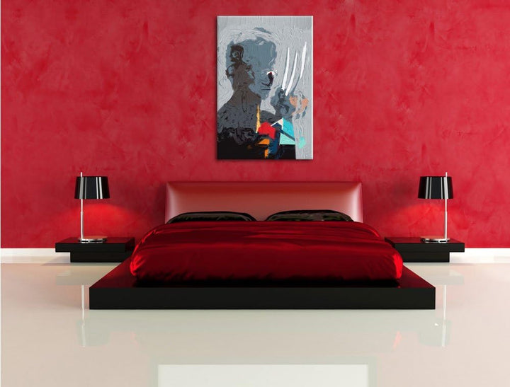 Wolverine Pinsel Effekt, Format: 100x70 auf Leinwand, XXL riesige Bilder fertig gerahmt mit Keilrahm