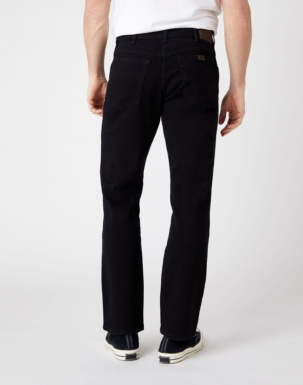 - Authentische unterhalb der Taille sitzende Jeans mit typischen Designdetails: 5 Hosentaschen, 7 Gürtelschlaufen, Reissverschluss, ikonische Wrangler-Nähte und Aufnäher mit Logo