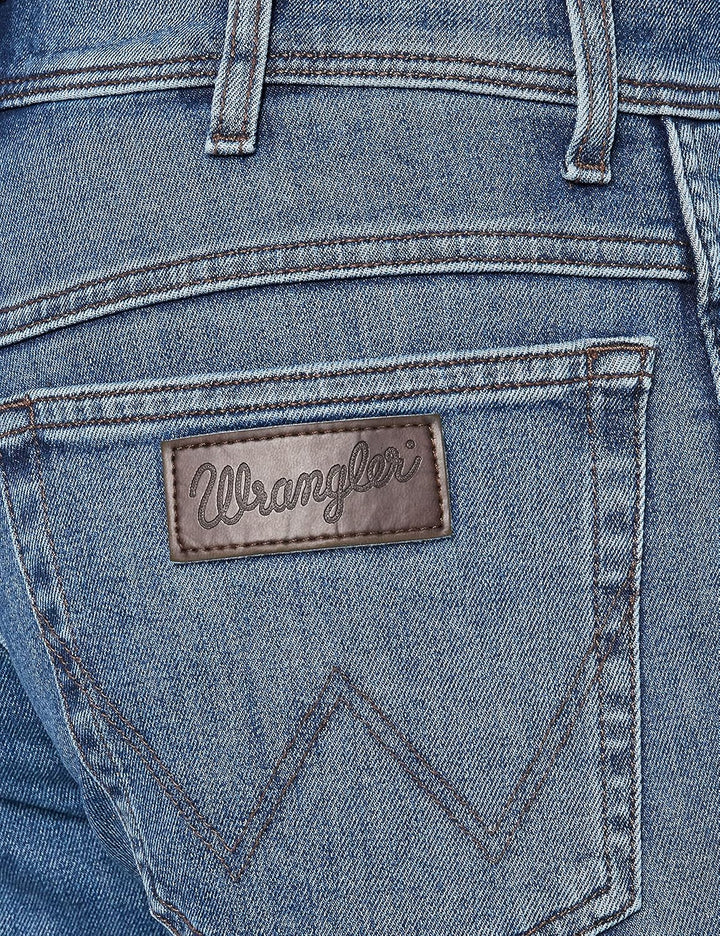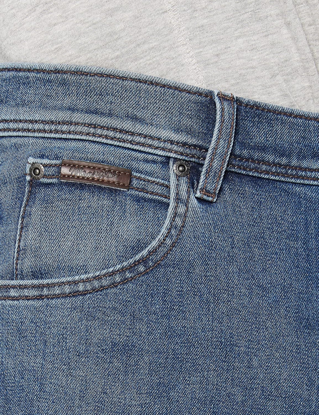 - Jeans für Herren mit klassischer Taille, Hosenschlitz mit Reissverschluss, braunem Echtleder-Label mit Logo und W-Naht an den Taschen