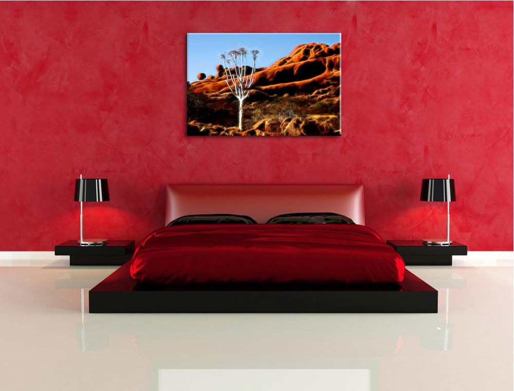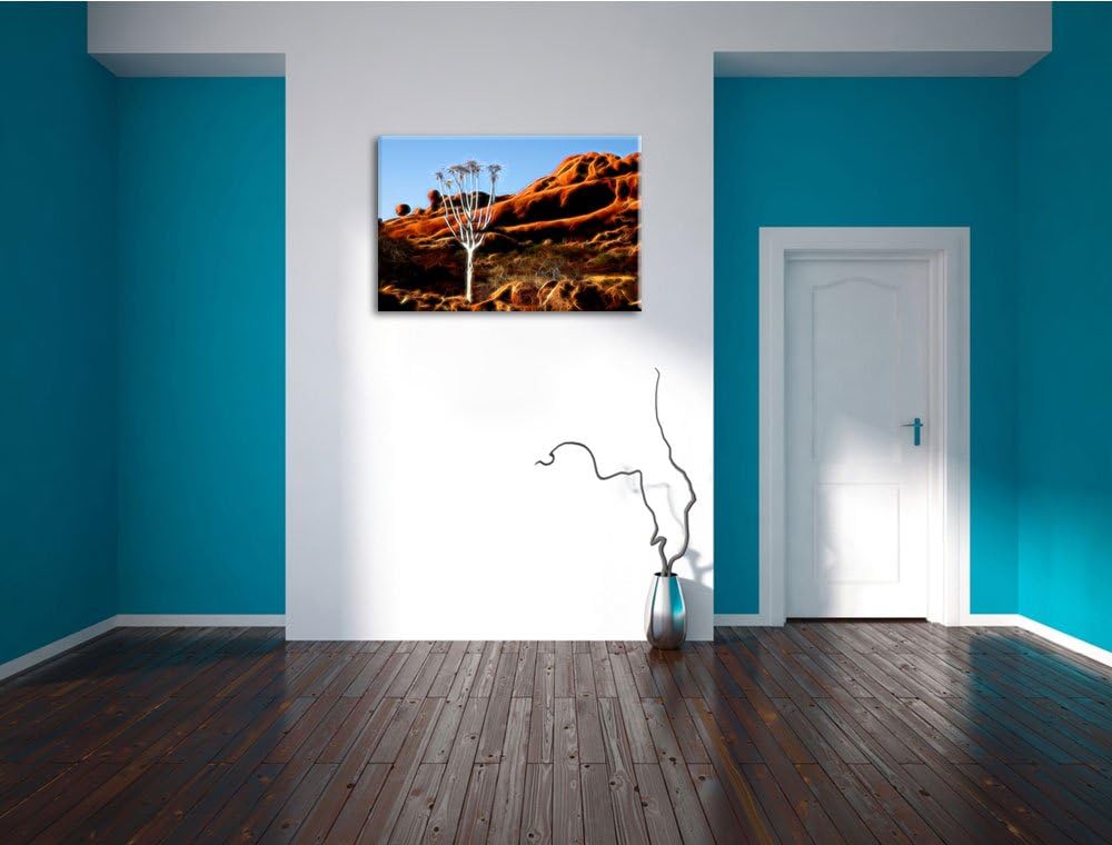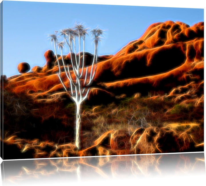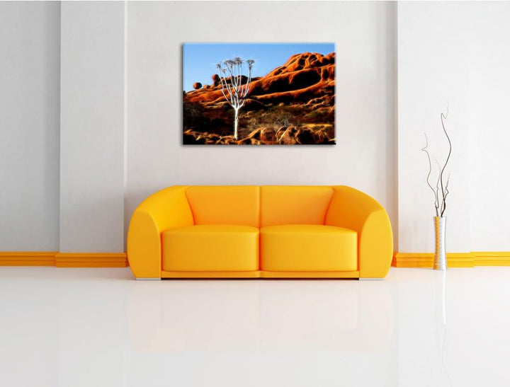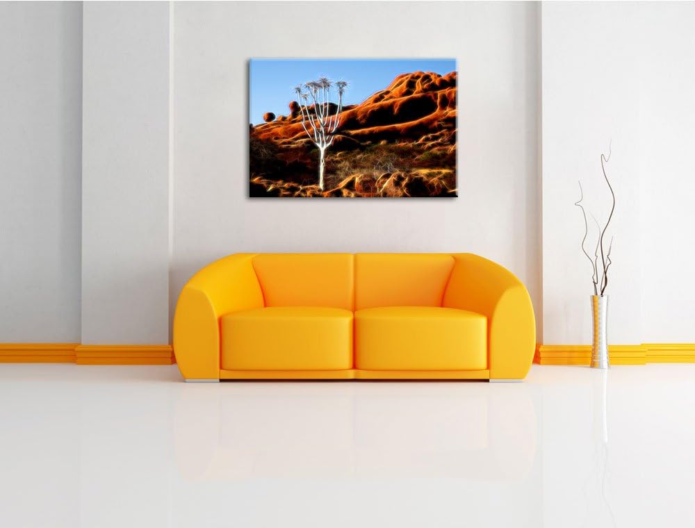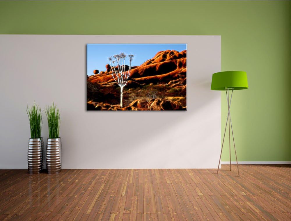 Wüstenbaum vor Felsen abstrakt Format: 100x70 auf Leinwand, XXL riesige Bilder fertig gerahmt mit Ke