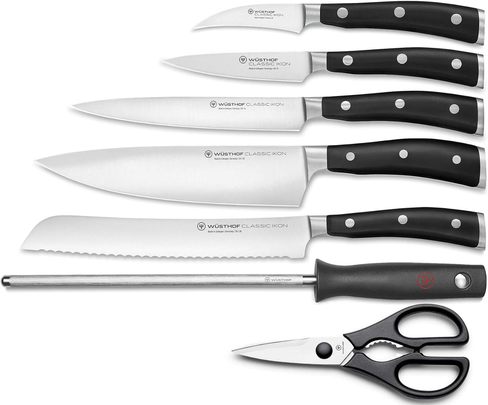 - Als elegante Küchen Messer aus Solingen beeindrucken die Wüsthof Messer der Classic Ikon Serie selbst anspruchsvolle Perfektionisten. So ist auch dieses Profimesser Messerset ein kompromisslos guter Küchenmesser Block mit zeitlosem Design