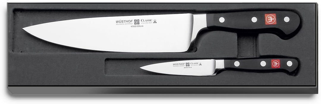 - Wüsthof Classic Messer überzeugen mit zeitlosem Design und bester Qualität. Sie sind pflegeleicht und bieten für jeden Food-Fan das ideale Koch-Werkzeug – z.B. dieses Profi-Kochmesser-Set inkl. 1 japanisches Kochmesser sowie 1 kleines Messer für