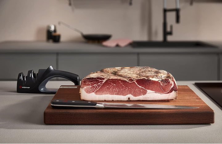 - Der Rollschleifer Messerschärfer hat einen voreingestellten Schleifwinkel von rund 30 Grad – optimal für scharfe Messer. Geeignet für Linkshänder und Rechtshänder. Ein erstklassiges Produkt von Wüsthof, der Premium-Messermarke aus Solingen