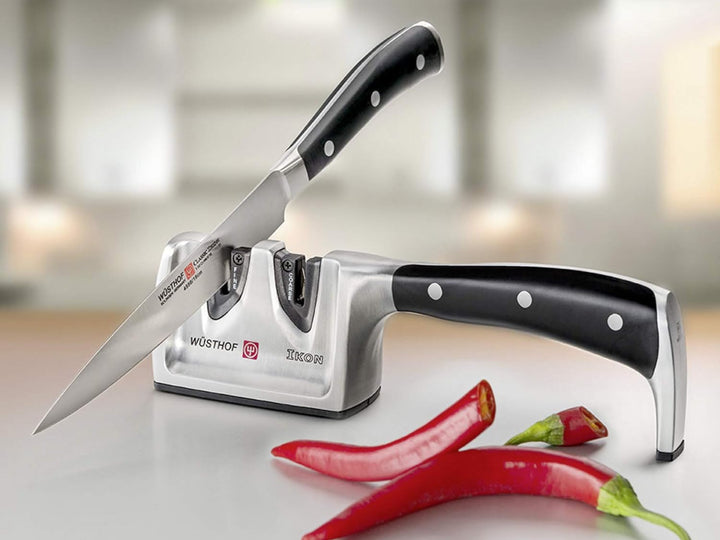 - Der Rollschleifer Messerschärfer hat einen voreingestellten Schleifwinkel von rund 30 Grad – optimal für ein scharfes Messer. Er ist geeignet für Linkshänder und Rechtshänder. Ein erstklassiges Produkt von Wüsthof, der Premium-Messermarke aus
