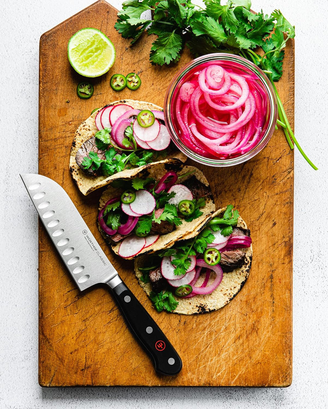 - Die Wüsthof Classic Messerserie überzeugt mit zeitlosem Design und zuverlässiger Leistung. Sie ist pflegeleicht und bietet für jeden Food-Fan das richtige Koch-Werkzeug – z.B. dieses japanische Kochmesser mit Kullenschliff für feine bis
