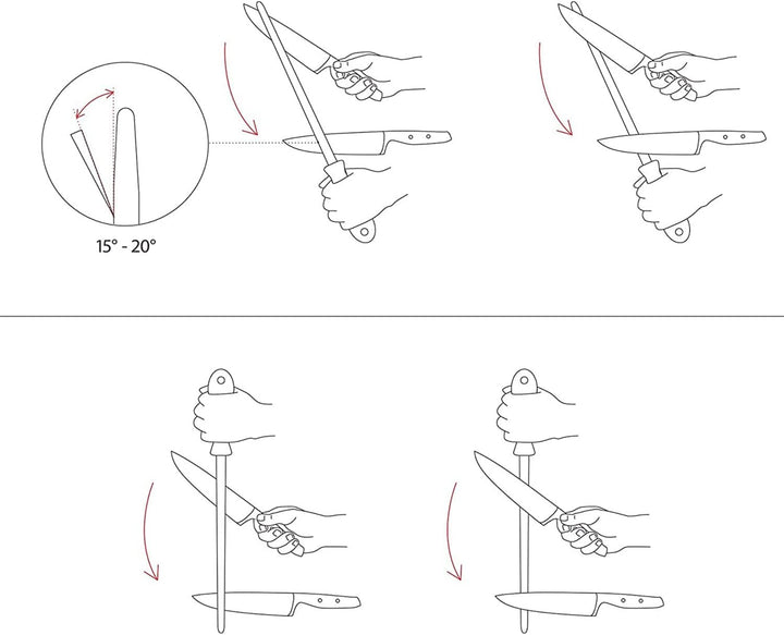 - Messer richtig schärfen: Ein Schärfstab aus Diamanten erzeugt etwas mehr Abrieb als ein Keramikstab und erzeugt einen schnellen Abzug der Klinge. Für das tägliche Aufrichten der Wate (Schneide) empfehlen wir zusätzlich einen Wüsthof Wetzstahl für