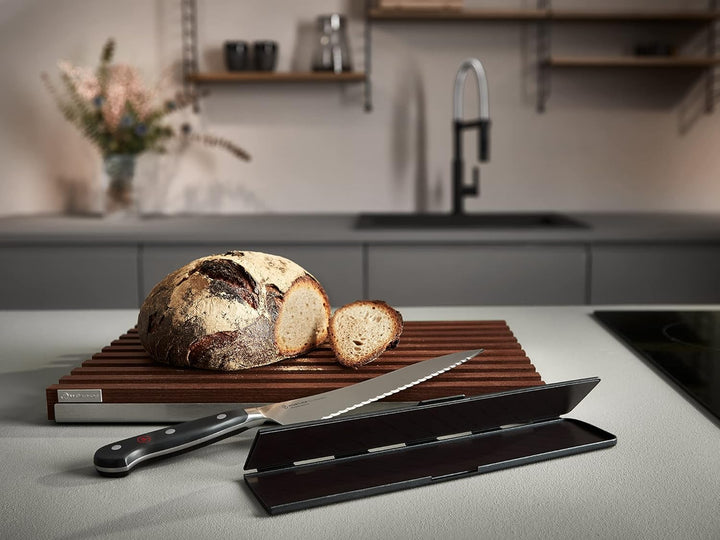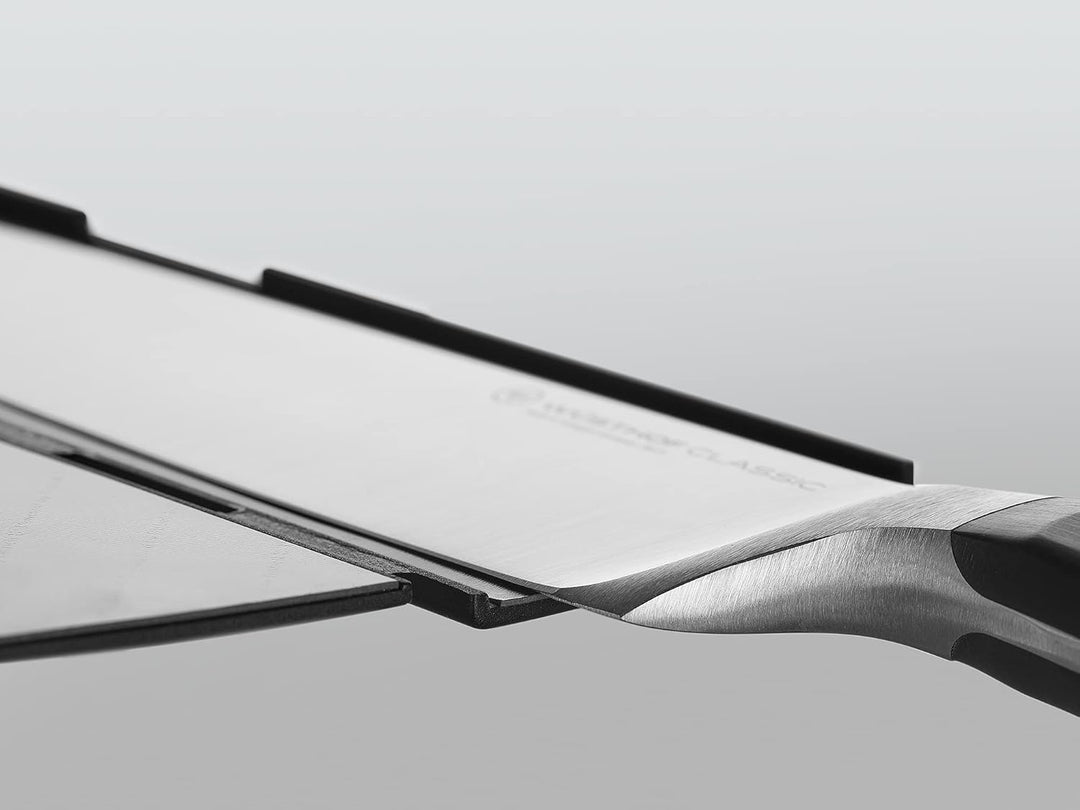- Klein bis gross – Kochmesser Klingenschützer sind für Klingen bis 32 cm Länge erhältlich. Im Wüsthof Sortiment finden sie auch weitere Ideen zur Messer-Aufbewahrung für unterwegs (Kochmappe) oder in der Küche (Messerblock, Messerleiste,