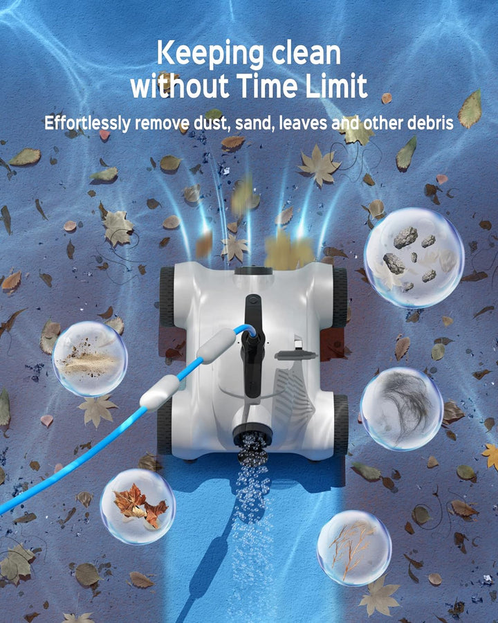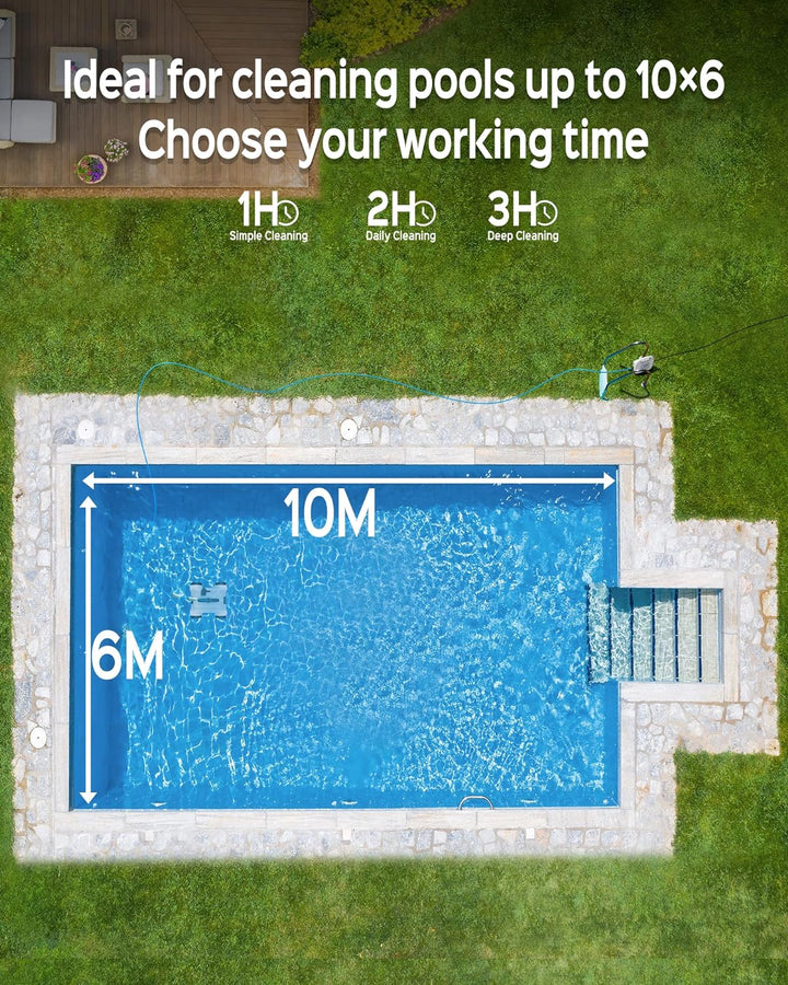 - 【Kein Zeitlimit und Hervorragende Anpassungsfähigkeit】Der poolroboter boden verfügt über 3 Arbeitszyklen (1h, 2h, 3h) und Sie können je nach Verschmutzung des pools entscheiden, wie lange er reinigen soll. Der Poolroboter ist ausserdem mit 3