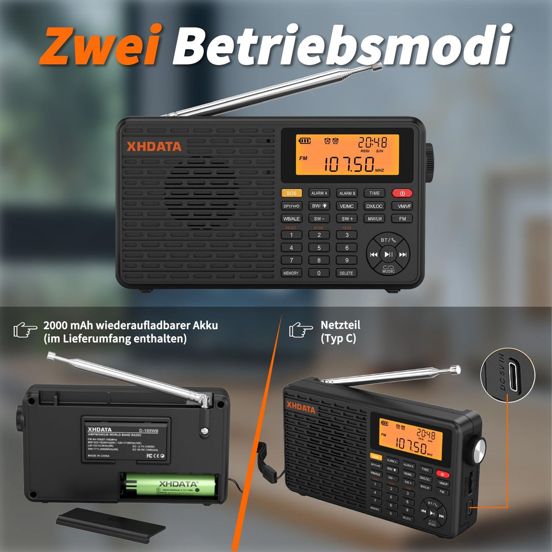 - KAUFEN SIE MIT VERTRAUEN: XHDATA hat sich auf Radios spezialisiert und verfügt über langjährige Erfahrung in der Herstellung hochwertiger Radios.1*XHDATA D-109WB Tragbares Retro-Radio; 1*Akku; 1*Typ-c-Ladekabel; 1*Bedienungsanleitung; 1*1 Jahr