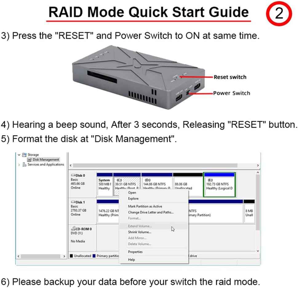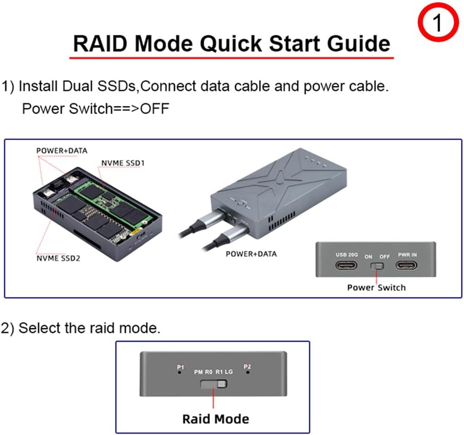 - Vier RAID-Modi: RAID 1, RAID 0, JBOD, BIG. RAID 1 bietet Redundanz, um Datenverluste zu vermeiden; RAID 0 bietet herausragende Leistung in der Geschwindigkeit für grosse Volumen von High-Speed-Speicher, wie 4K-Videos und Spiele; JBOD bietet 2 separate