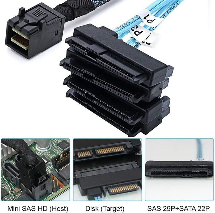 - Internes Mini-SAS SFF-8643 Host auf 4 SAS 29-Pin SFF-8482 Target Disk 6Gbps Data Server Raid Kabel