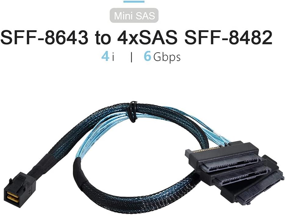 - Dieses SAS-Kabel ermöglicht den Anschluss von bis zu 4 SAS- oder SATA-Laufwerken an einen Mini SAS HD SFF-8643-Controller. Nicht geeignet für PCI-E SFF-8643 Controller.
