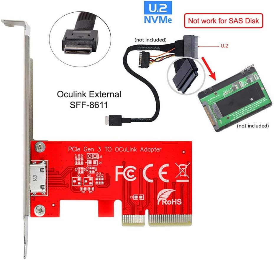 - Xiwai PCI-E 3.0 Express 4.0 x4 zu Oculink Externer SFF-8612 SFF-8611 Host-Adapter für PCIe SSD mit Halterung