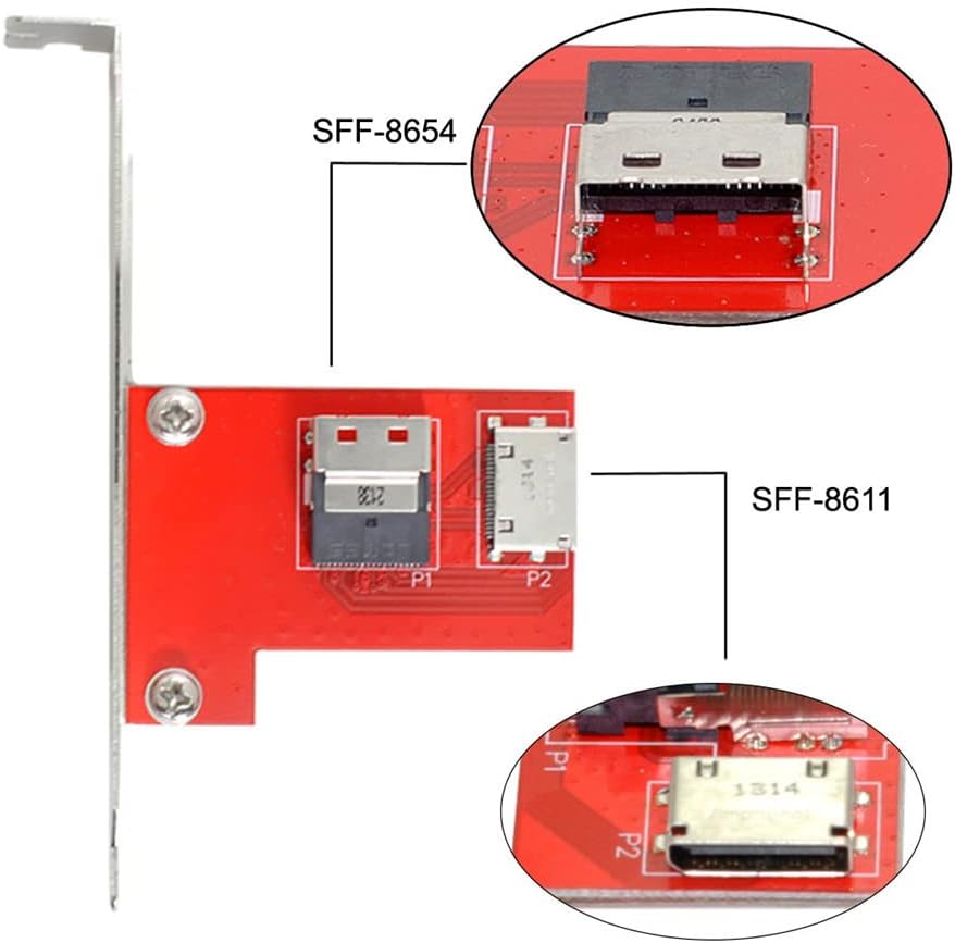 - PCI-Express 4.0 Slimline SAS SFF-8654 auf Oculink SFF-8611 SFF-8612 PCBA Buchse Adapter mit Halterung