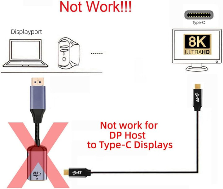 - Das Kabel kann nicht für USB-C-Monitor auf Displayport-Quellhost funktionieren.
