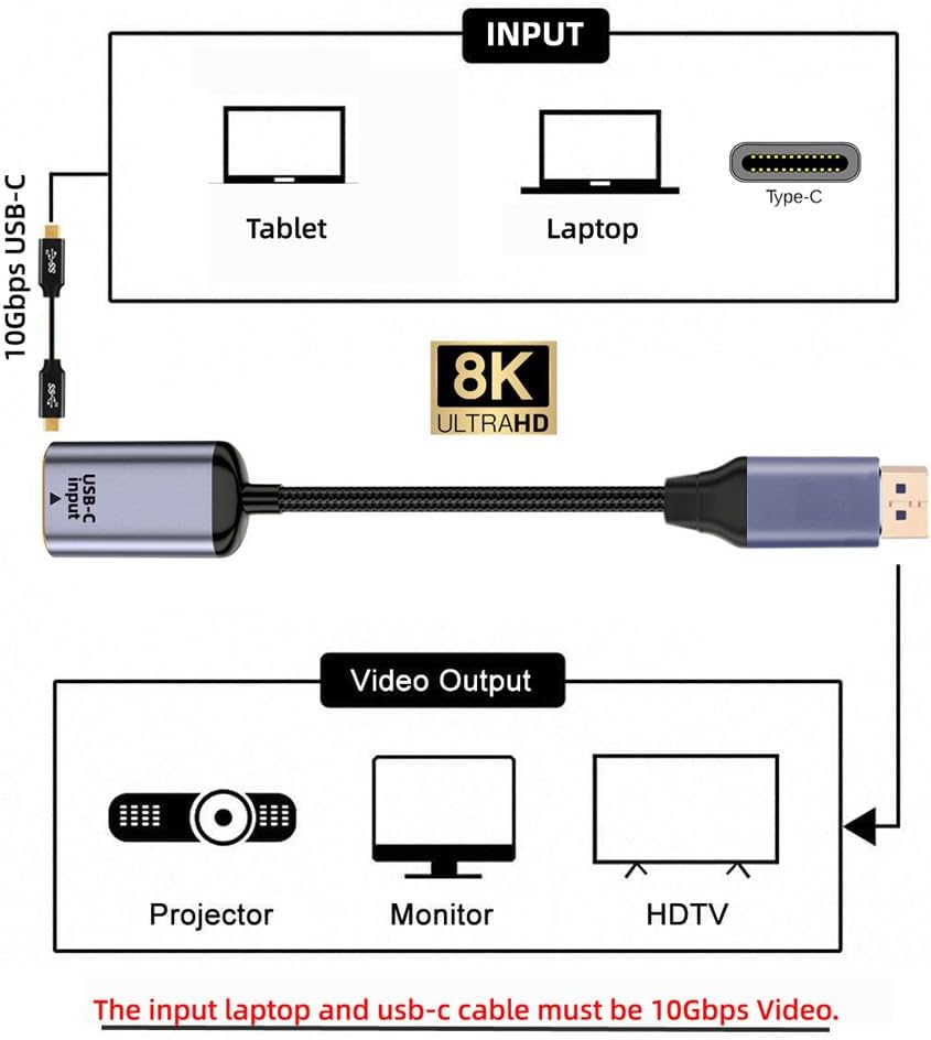 - Sie müssen das 10Gbps usb-c zu usb-c Kabel verwenden. (Andere Kabel funktionieren nicht)