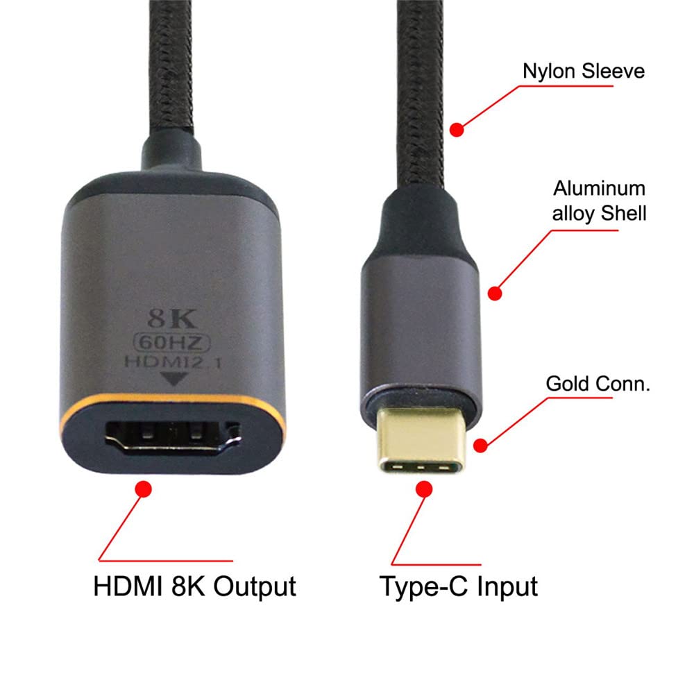 - Vergoldetes USB-C-zu-HDMI-Monitorkabel, Video 8K, 4K UHD 2160p, HD 1080p, Anschlüsse, verzinnter Kupferdraht, langlebiges Nylongeflecht, Aluminium-Gehäuse, alle von ihnen sorgen für eine starke Konnektivität zwischen Geräten. Mit 8K/4K USB-C auf