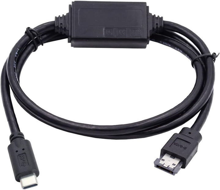 - Mit diesem 1 m langen USB-C-auf-eSATA-/Power-eSATA-Adapter können Sie jede externe eSATA-Festplatte (HDD), Solid-State-Laufwerk (SSD) oder optisches Laufwerk (ODD) über den USB-C-Anschluss Ihres Laptops oder Desktops anschliessen.